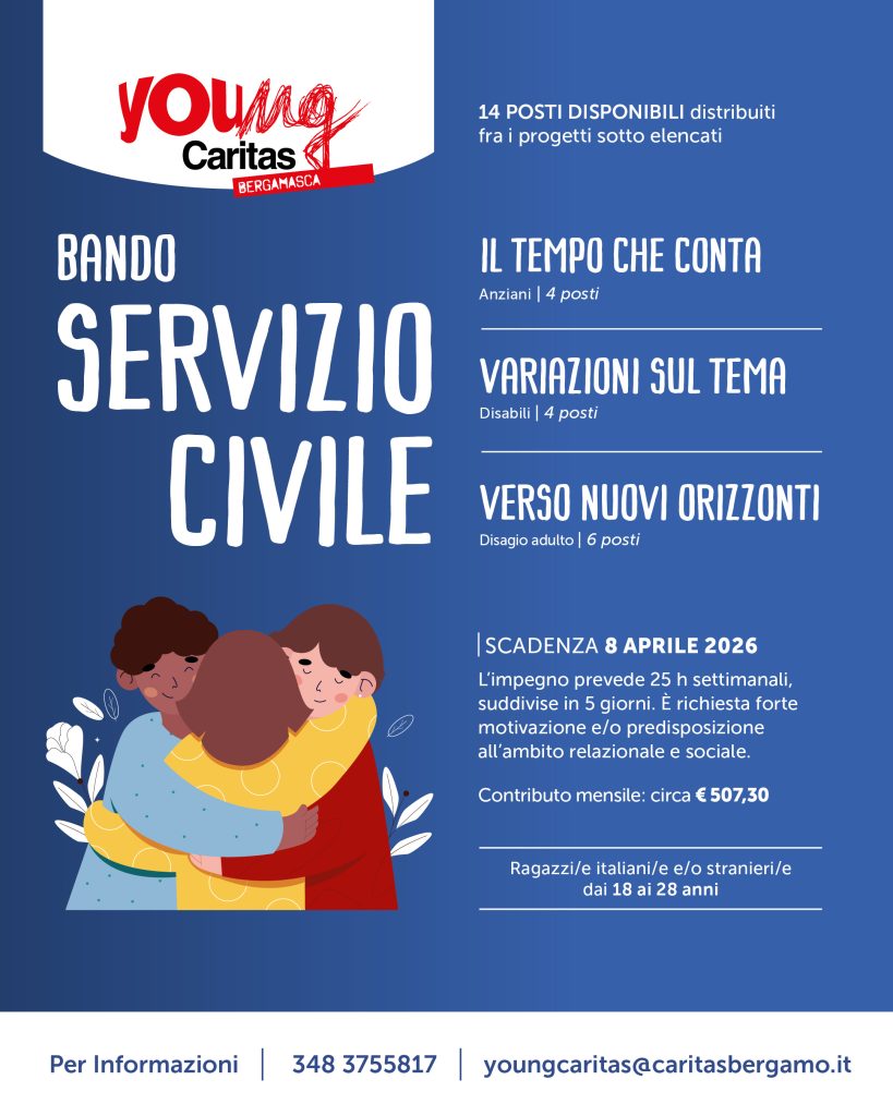 Per tutte le informazioni rispetto ai nostri progetti, alle sedi e come partecipare al bando:E–MAIL: youngcaritas@caritasbergamo.it